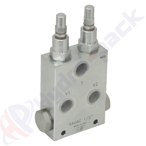 Hydropack oferă supape de limitare a presiunii în linie cu diferite domenii de reglare. Supapele din seria VAUAC oferă protecție la suprasarcină într-un mod rapid și precis, iar cavitația este prevenită datorită supapelor de reținere integrate. Se recomandă asamblarea conductei supapei de reținere la orificiul rezervorului.