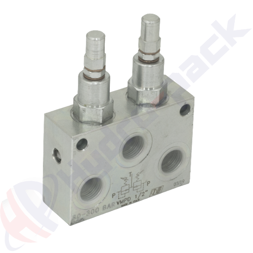 Hydropack oferă supape de limitare a presiunii în linie cu diferite domenii de reglare. Seria VMPD are două supape de siguranță care asigură protecție la suprasarcină în două linii hidraulice cu o conexiune la rezervor. Supapa permite, de asemenea, setarea diferitelor setări de presiune în aceste linii.